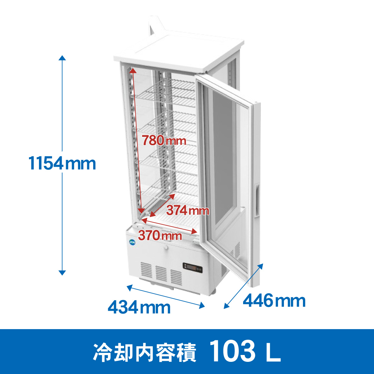 - 4面ともニ重ガラスで庫内保冷能力が良い。