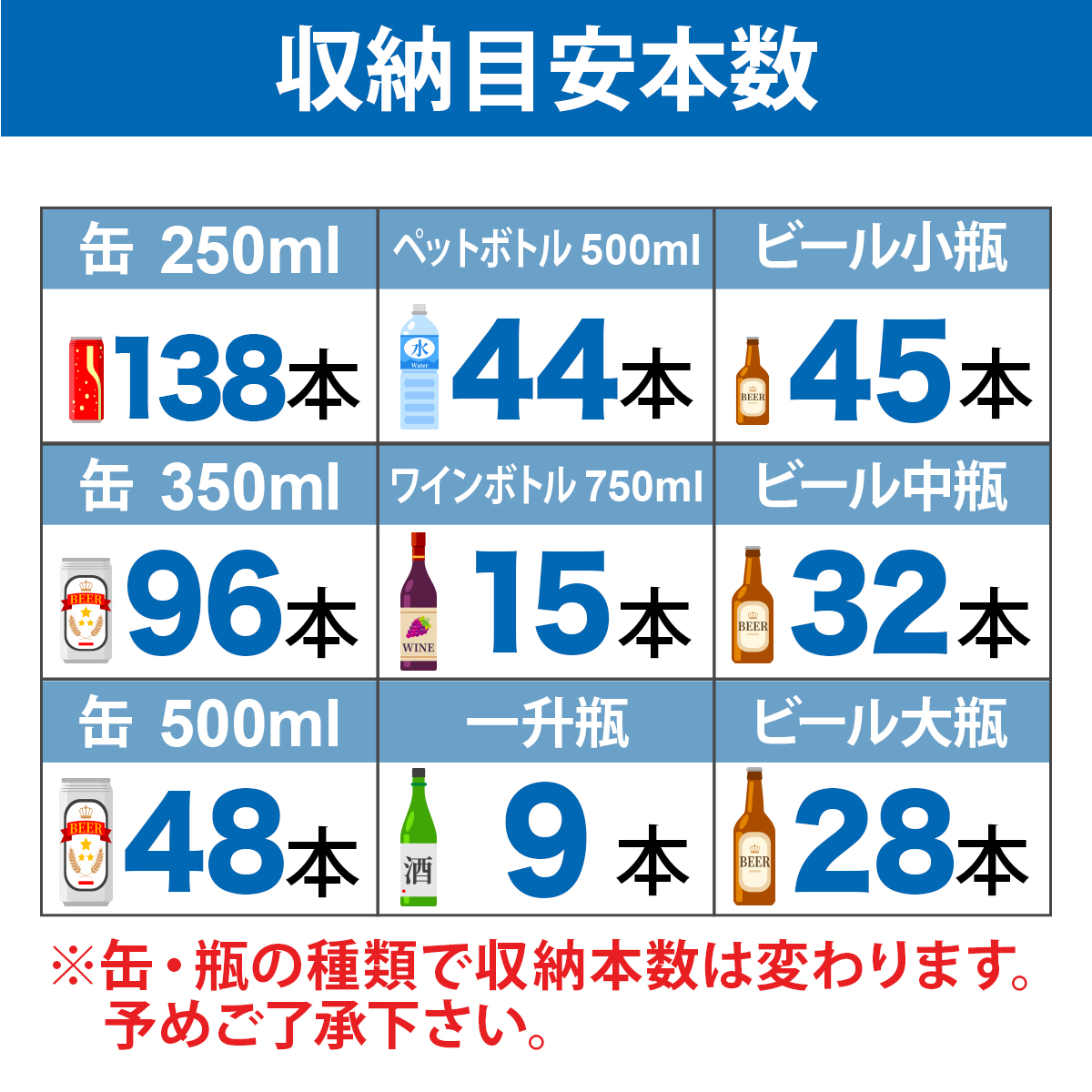 一升瓶:約9本 - 付属品棚板3枚、排水受け皿