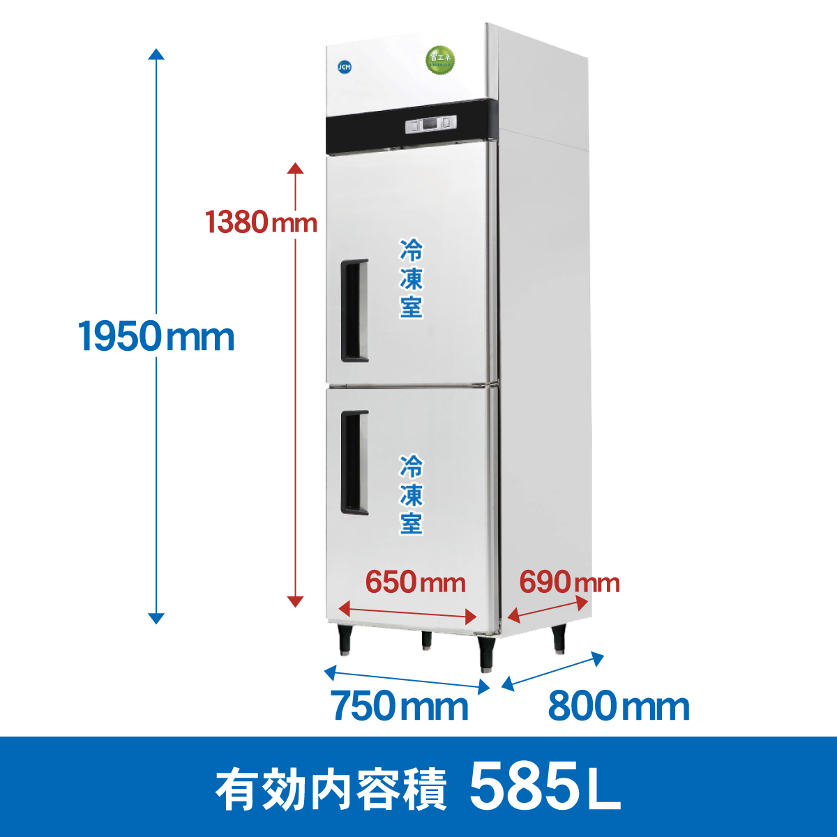 - 温度設定は冷凍-20℃~-15℃(外気温30℃・無負荷平衝時直射日光受けず)
