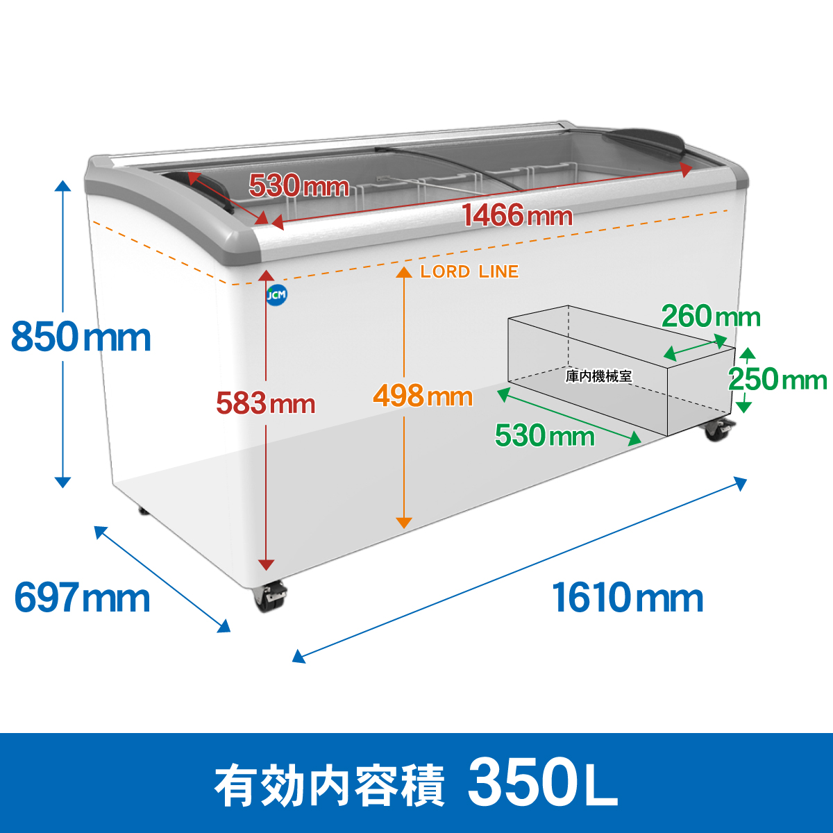 冷凍ショーケース ラウンド扉 LED照明付 【JCMCS-350L】