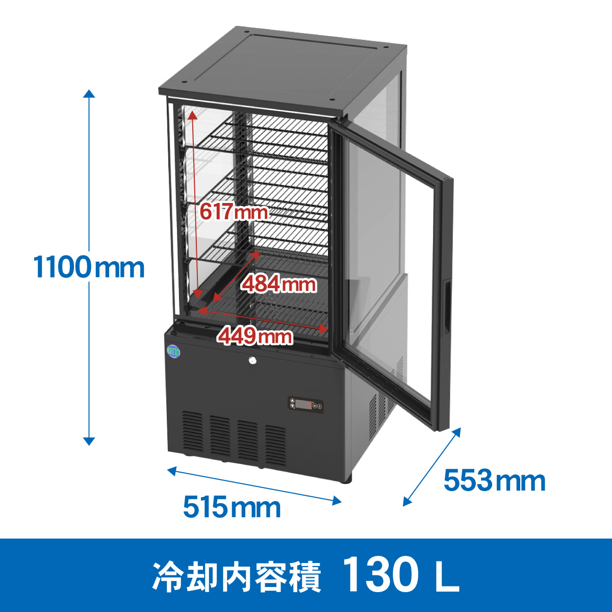 RIT 4面ガラス冷蔵ショーケース (片面扉) 【RITS-130】