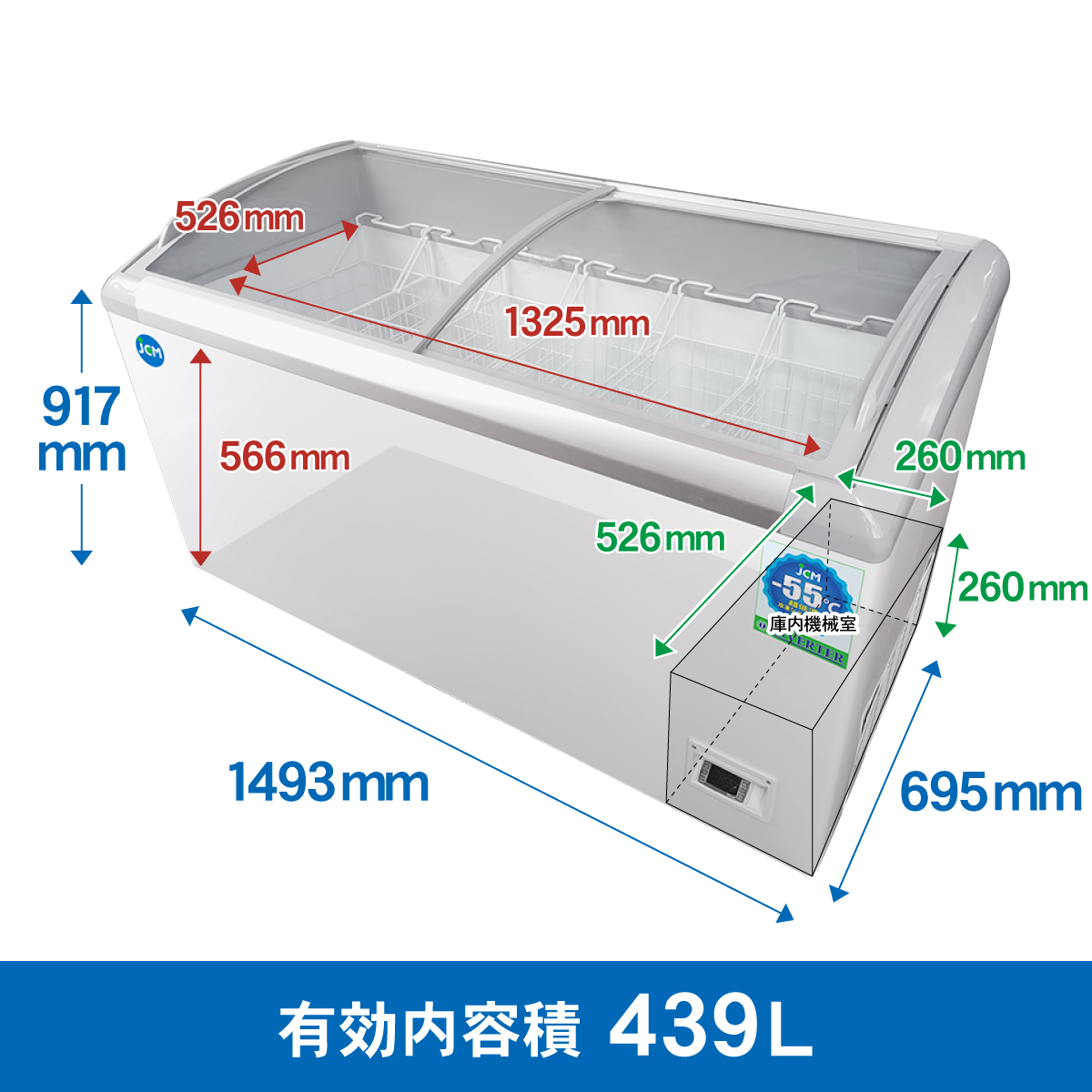- 庫内寸法1325×526×566㎜