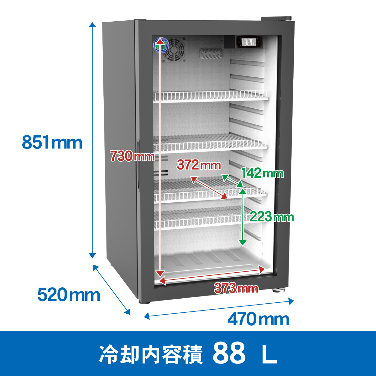 - 冷蔵範囲-6℃~10℃(外気温25℃、湿度60%、周囲風速0.2m/s以下、無負荷平衡時直射日光受けず)