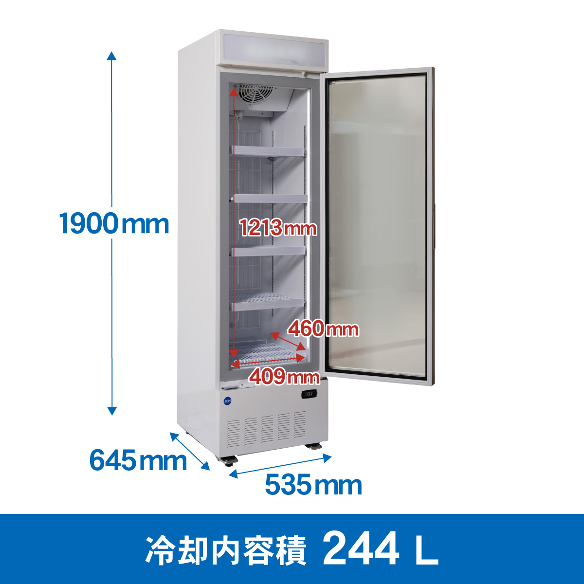 - LED 照明付きで庫内が明るく見やすく、LED サインBOX付きで宣伝効果向上