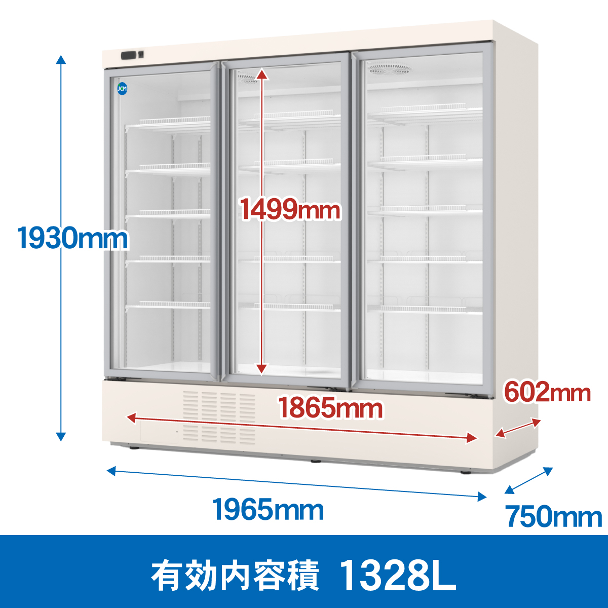 タテ型冷蔵ショーケース3枚扉【JCMS-1328H】