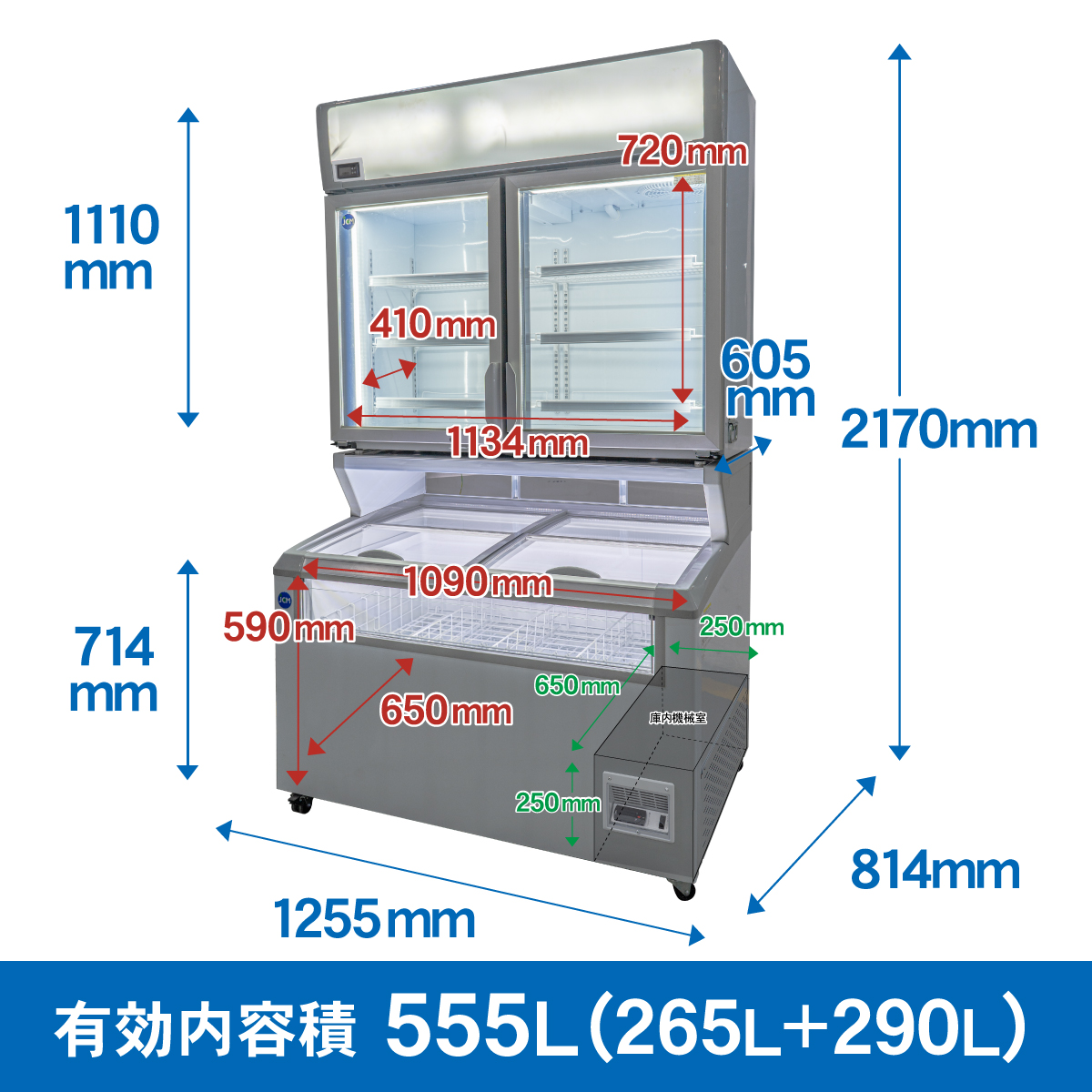 デュアル型冷凍ショーケース(上下セット)【JCMCS-265290】