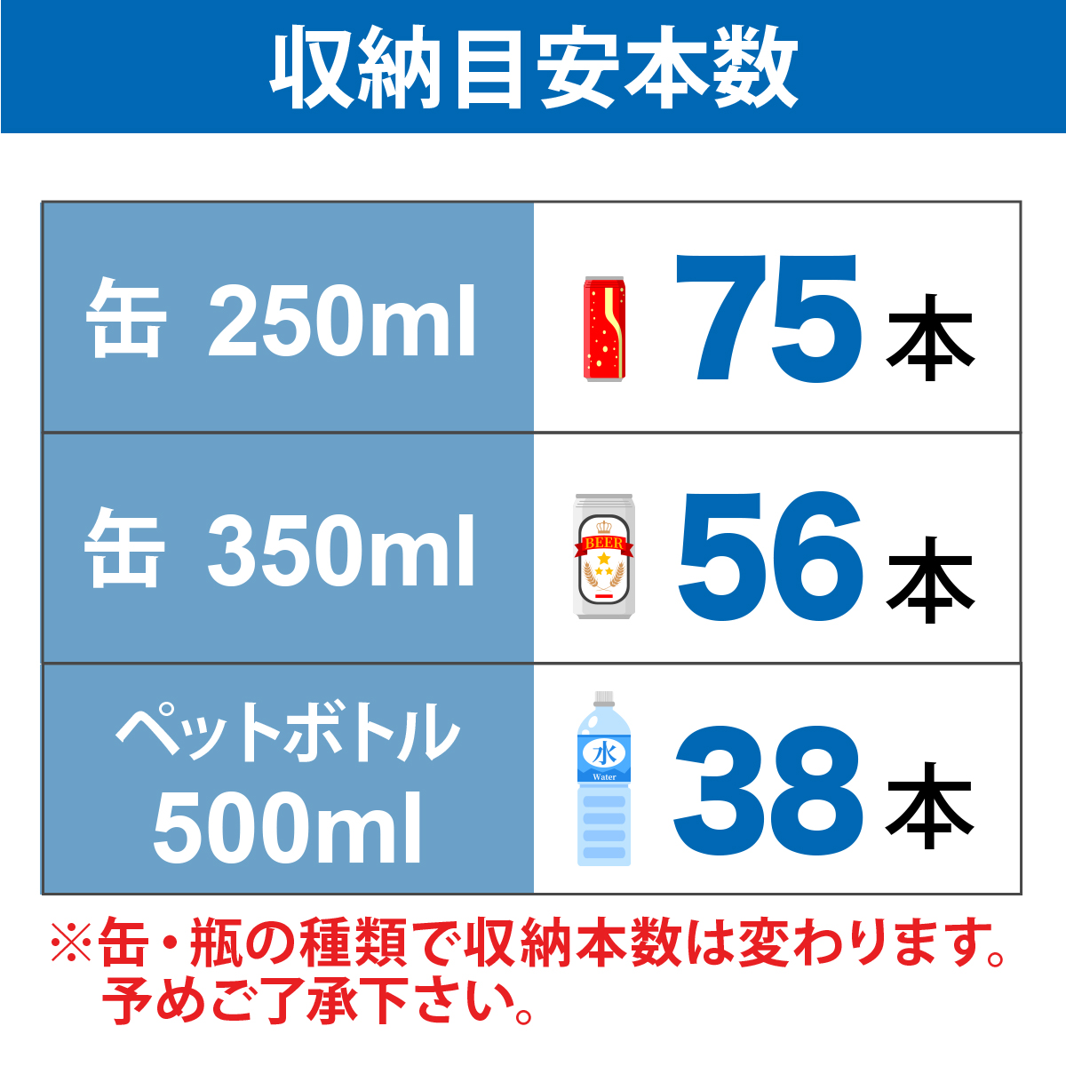 - 収納目安250ml缶:約75本 350ml缶:約56本 500mlPB:約38本