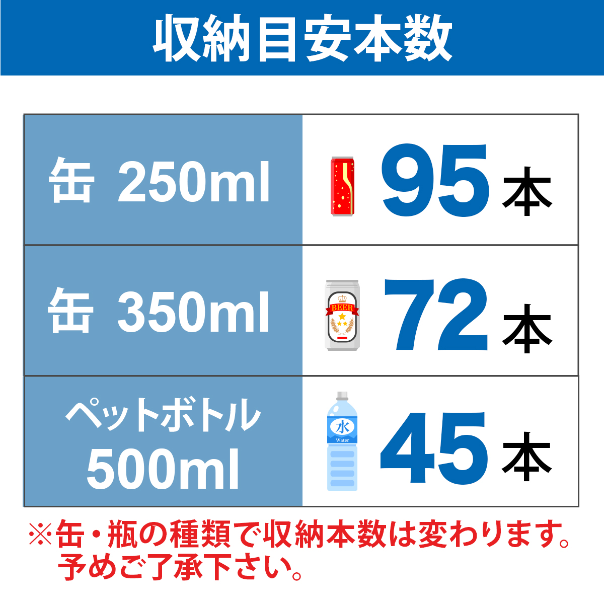 - 収納目安250ml缶:約95本 350ml缶:約72本 500mlPB:約45本