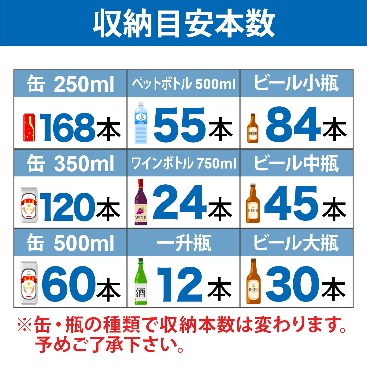 - 収納目安250ml缶:約168本