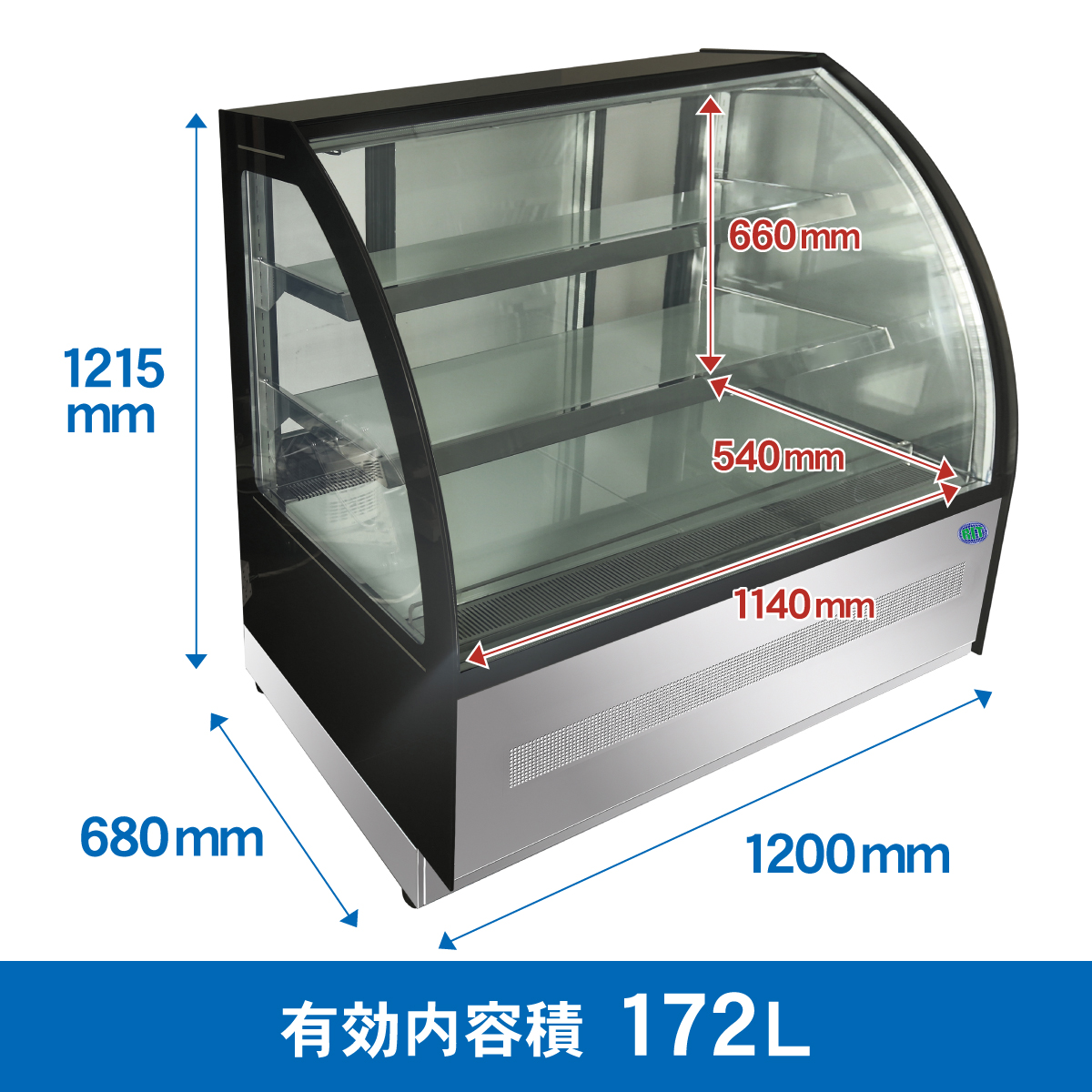 RIT対面冷蔵ショーケース(ラウンド型)【RITS-172T】