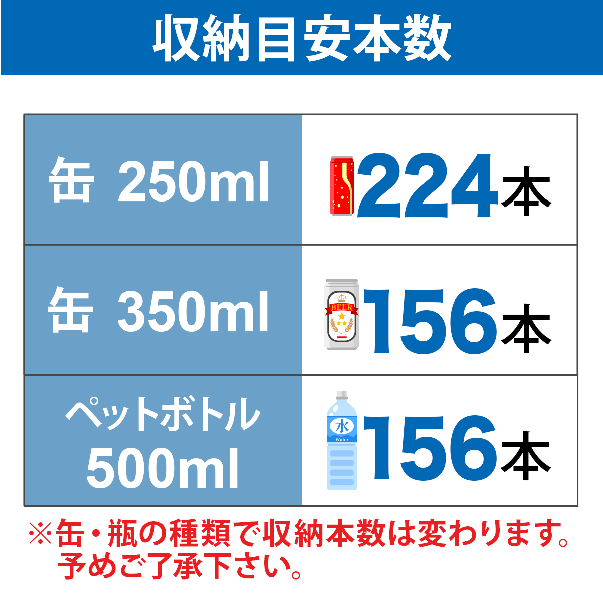 - 収納目安250ml缶:約224本 350ml缶:約156本 500mlPB:約156本