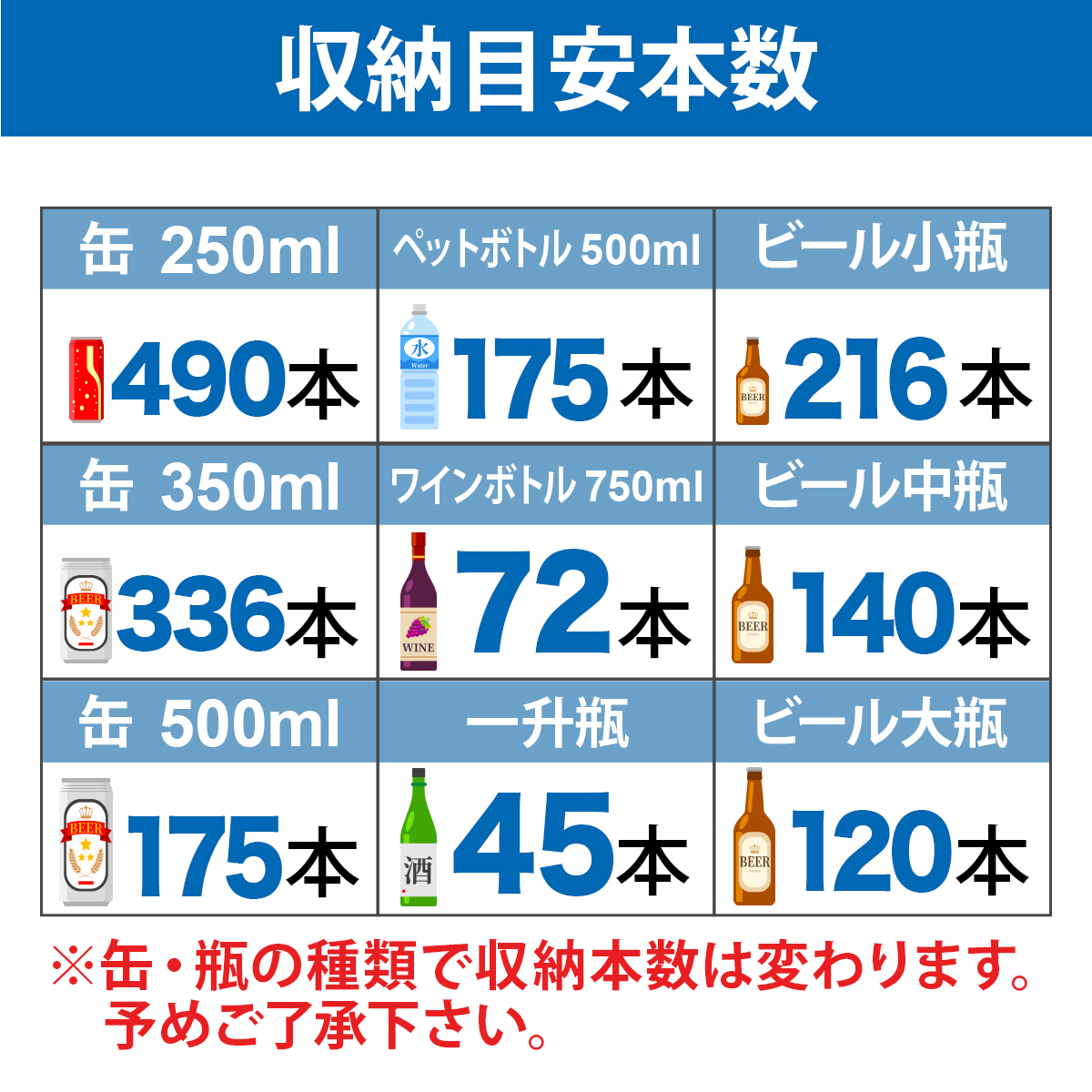 - 収納目安250ml缶:約490本