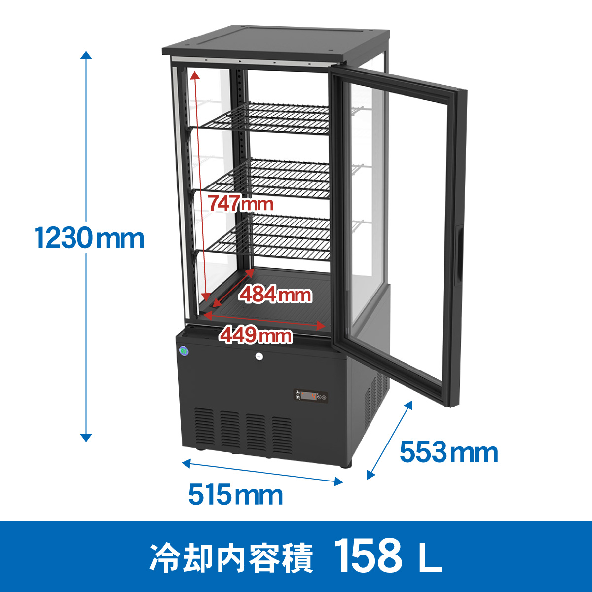 RIT 4面ガラス冷蔵ショーケース (片面扉) 【RITS-160】