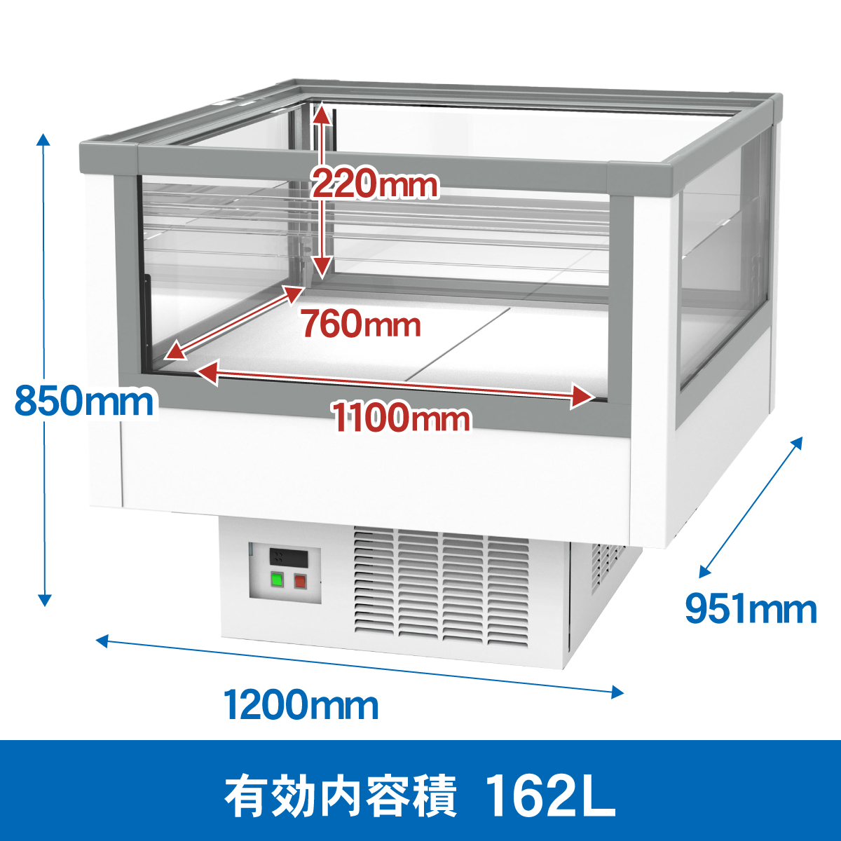 アイランド平型冷蔵ショーケースガラススライド扉付【JCMS-162AD】★在庫わずか